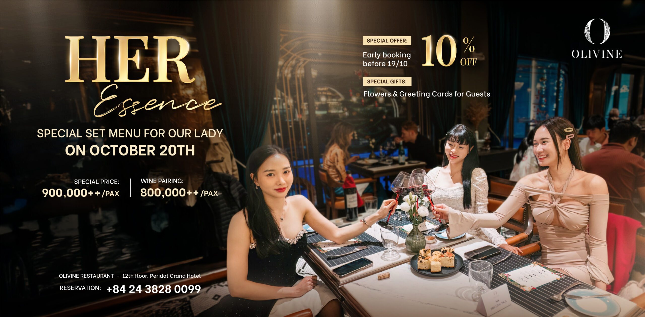 In celebration of Vietnamese Women’s Day on October 20, Peridot Grand Luxury Boutique Hotel Hanoi proudly presents “Her Celebration Series” – an exquisite trilogy of culinary experiences dedicated to honoring the grace, strength, and beauty of women. This special edition invites guests on a heartfelt journey through culture, flavor, and emotion, each venue offering a unique tribute to femininity.